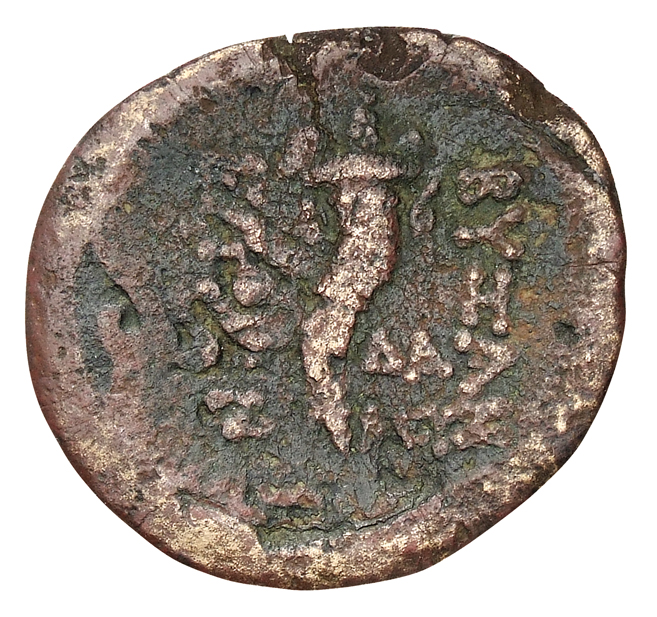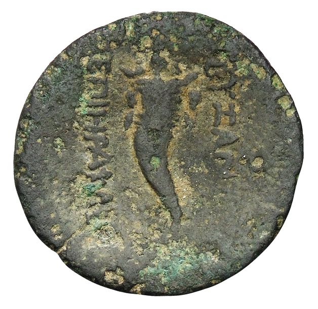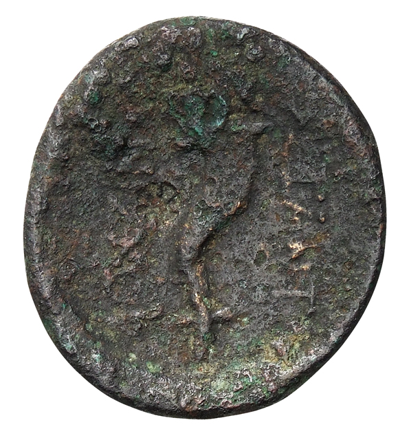 Laureate head of Apollo, left.
