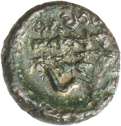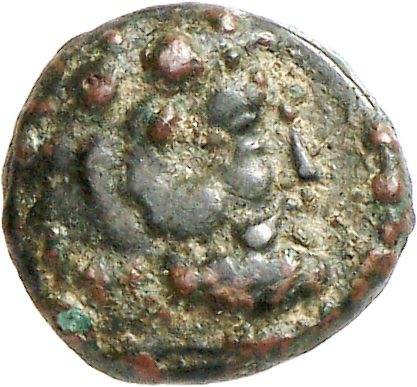 Diademed and draped bust of Artemis, right; bow and quiver over left shoulder.