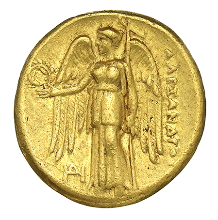 ΑΛΕΞΑΝΔΡΟΥ: Nike standing left holding wreath in right hand, and stylis in her left hand
