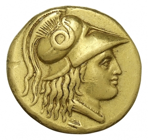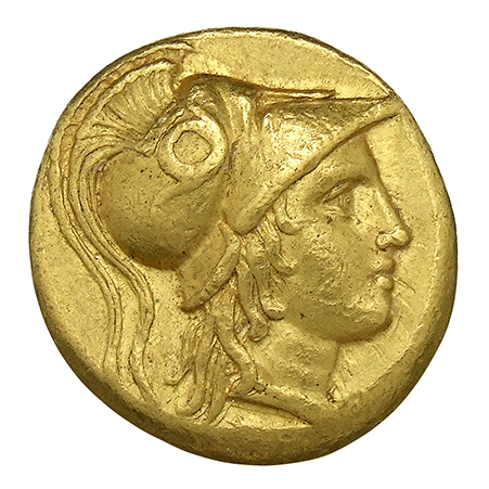 ΑΛΕΞΑΝΔΡΟΥ: Macedonian helmet with crest and cheek pieces
