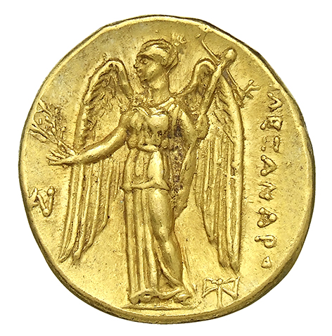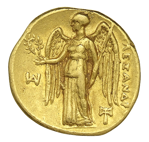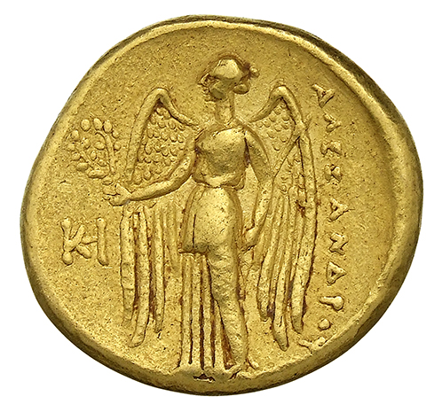 ΑΛΕΞΑΝΔΡΟΥ: Nike standing left holding wreath in right hand, and stylis in her left hand