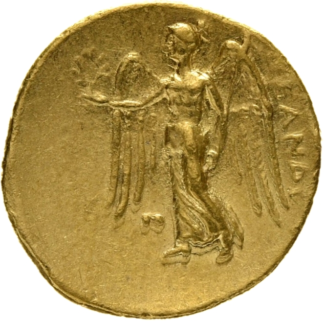 ΑΛΕΞΑΝΔΡΟΥ: Nike standing left holding wreath in right hand, and stylis in her left hand