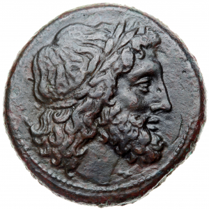 Laureate Head of Zeus right, of Sicilian style, dotted border