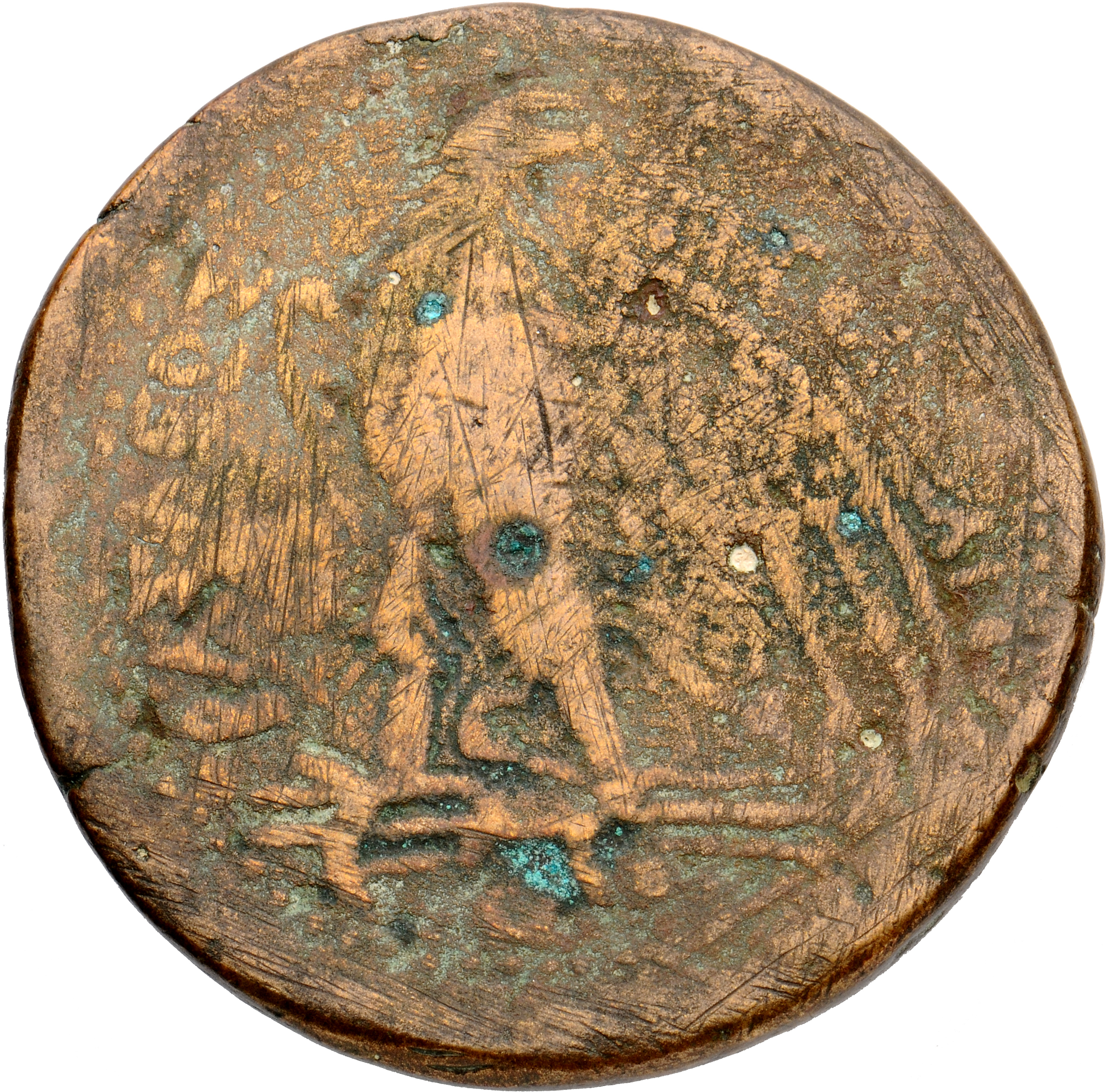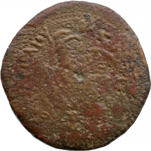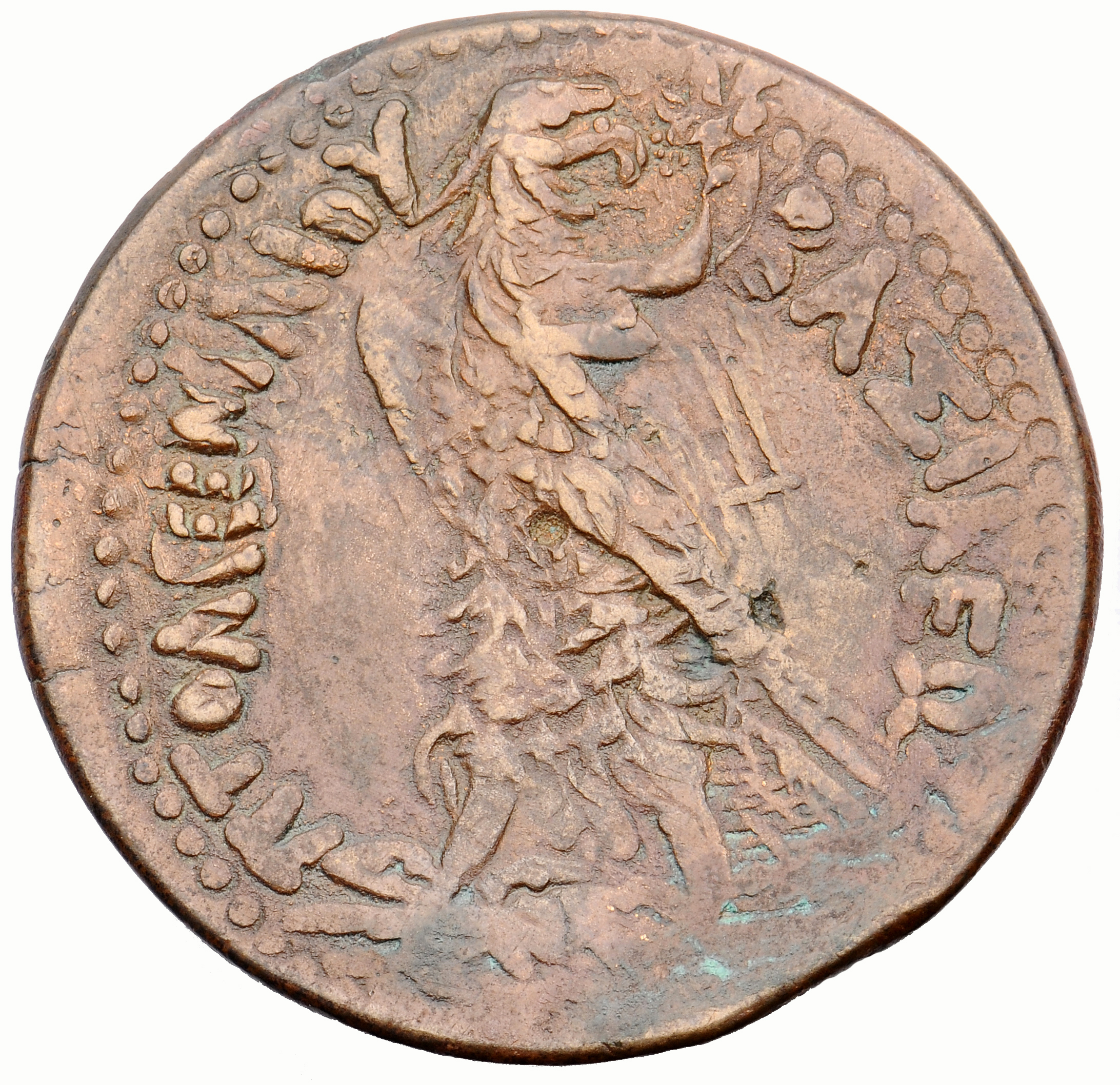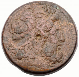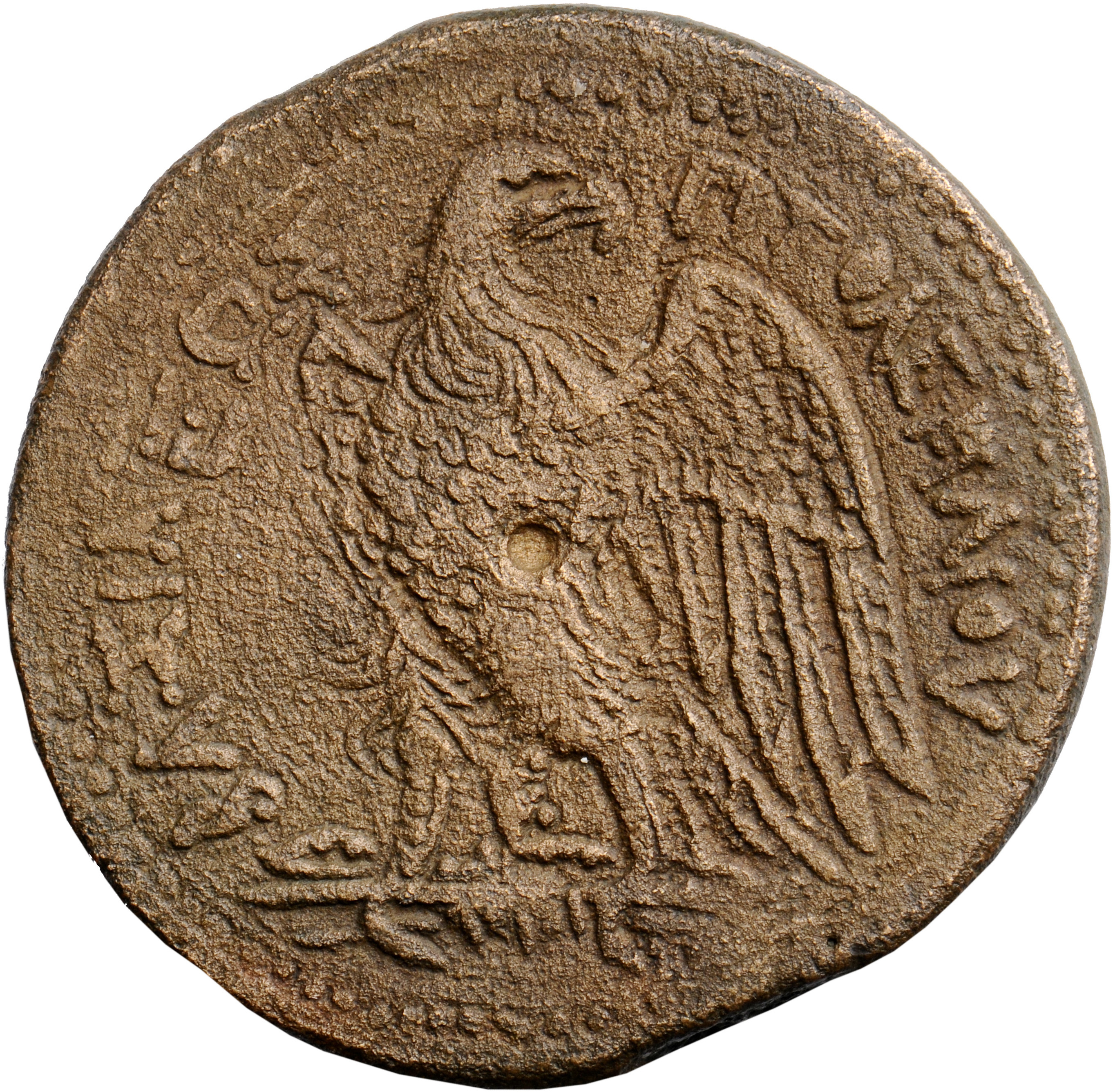 ΠΤΟΛΕΜΑΙΟΥ on l. ΒΑΣΙΛΕΩΣ on r.: Eagle with closed wing standing left on thunderbolt, Head reverted, Cornucopiae bound with royal diadem on shoulder, dotted border
