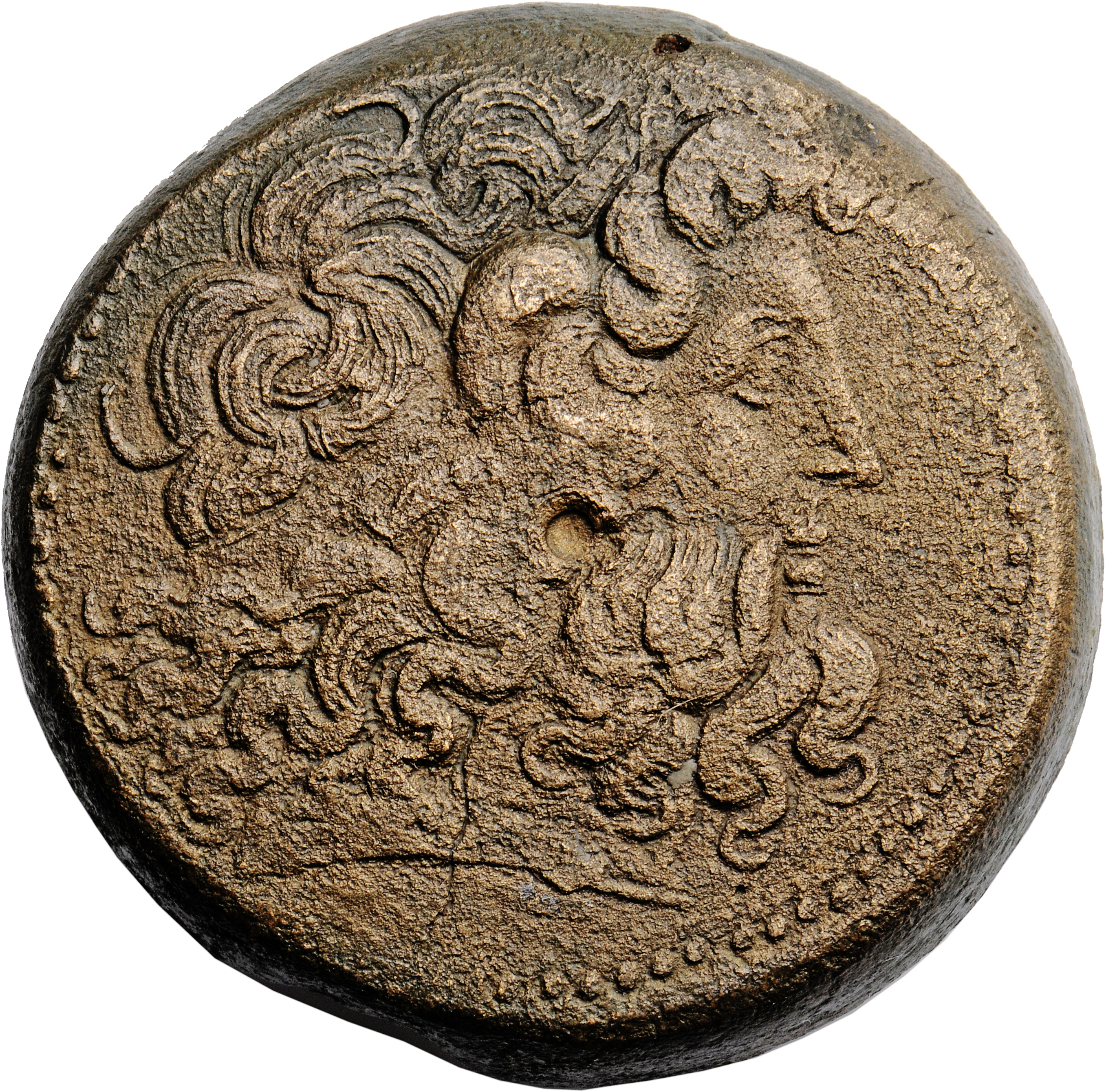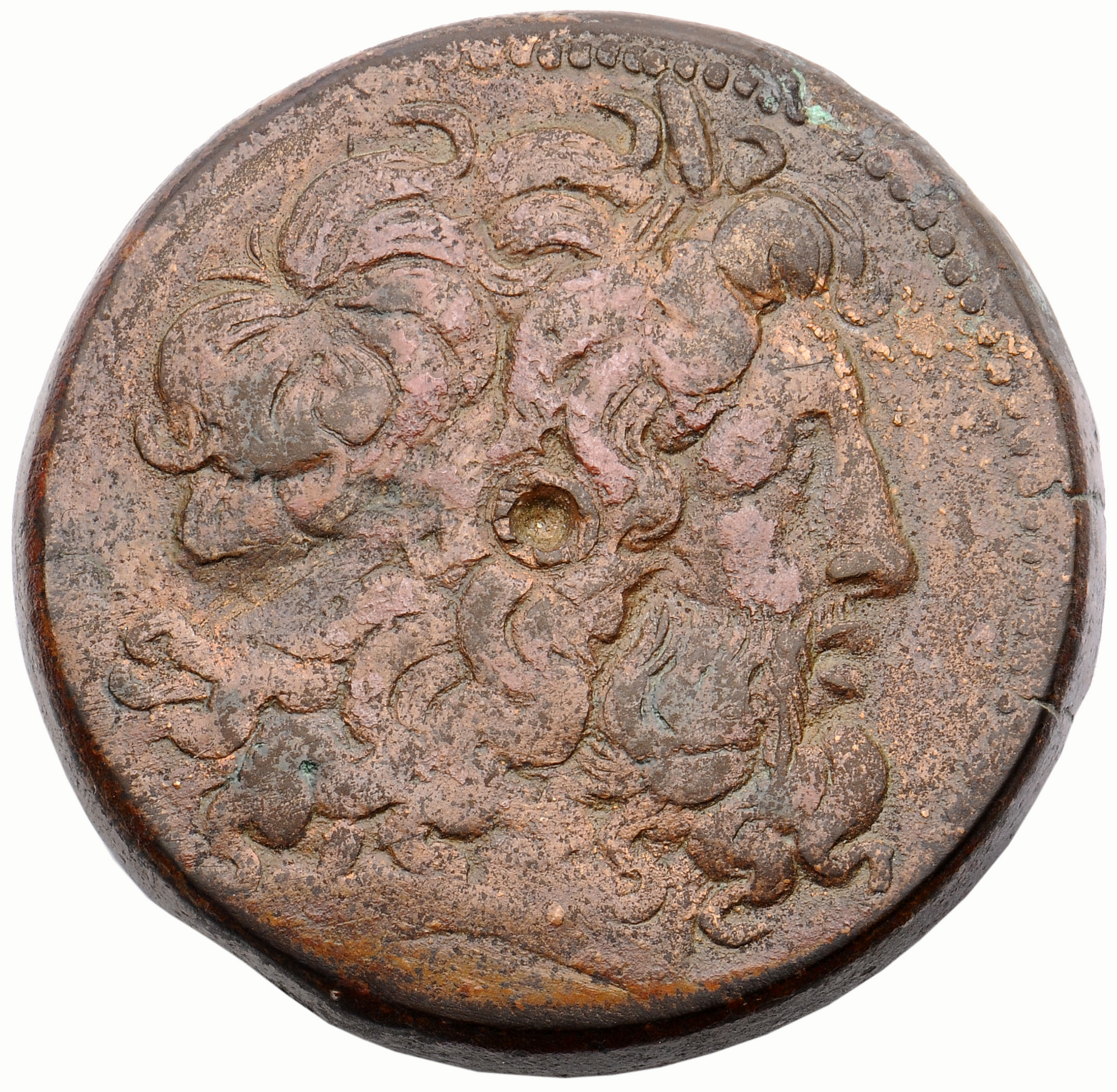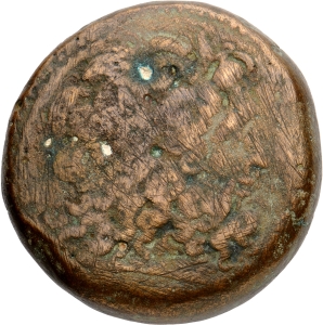 Horned Head of deified Alexander right in elephant Headdress, dotted border