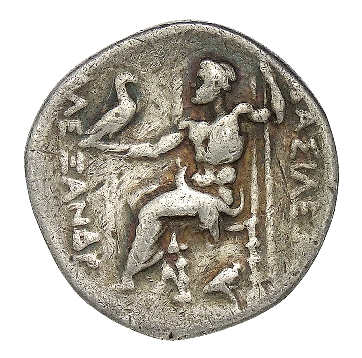 ΒΑΣΙΛΕΩΣ ΑΛΕΞΑΝΔΡΟΥ: Zeus seated on stool-throne left, eagle on outstretched right hand, sceptre in left hand