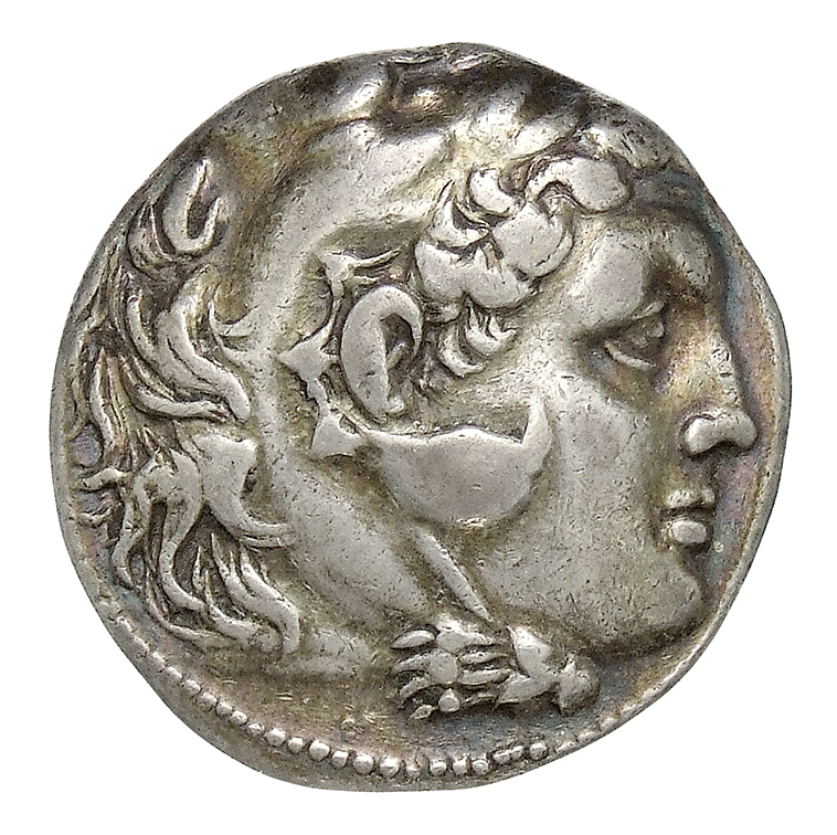 Head of beardless Heracles right wearing lion skin headdress