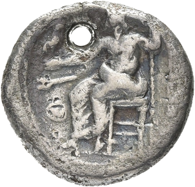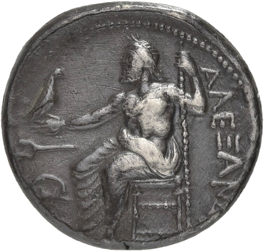 ΑΛΕΞΑΝΔΡΟΥ: Zeus seated on stool-throne left, eagle on outstretched right hand, sceptre in left hand