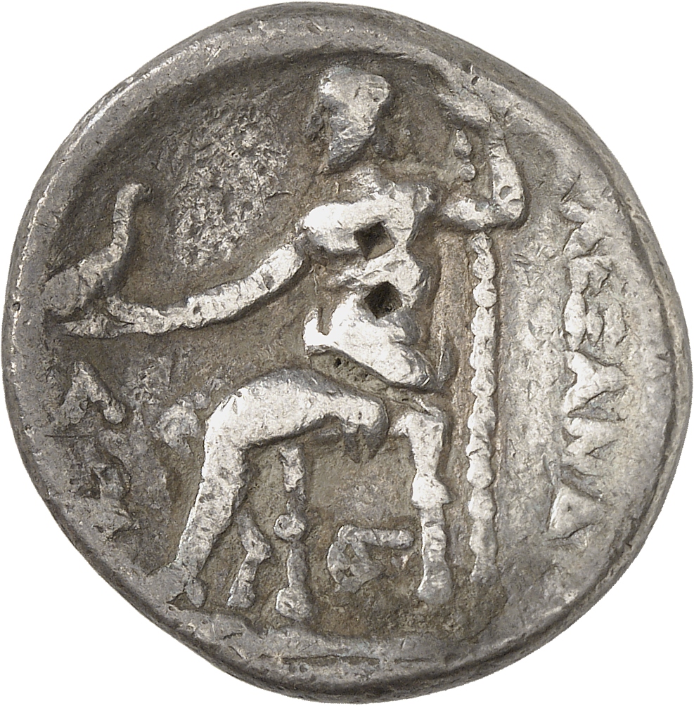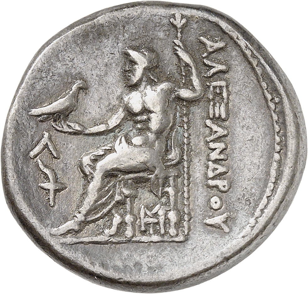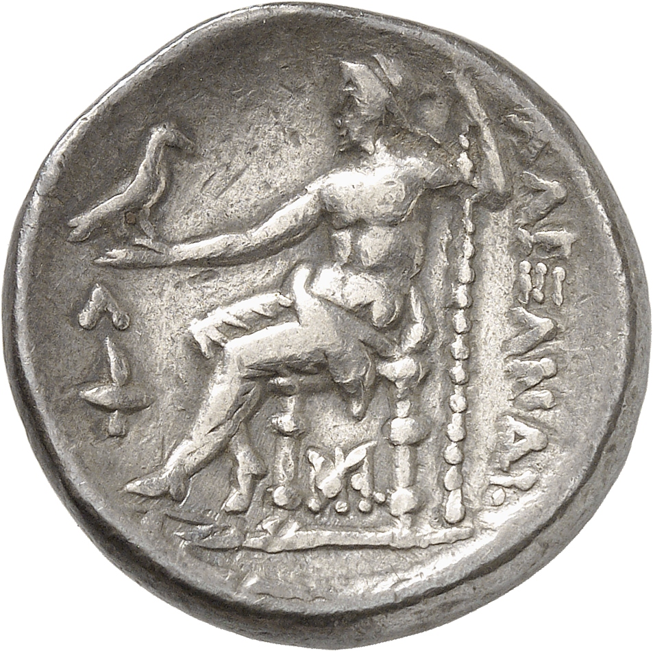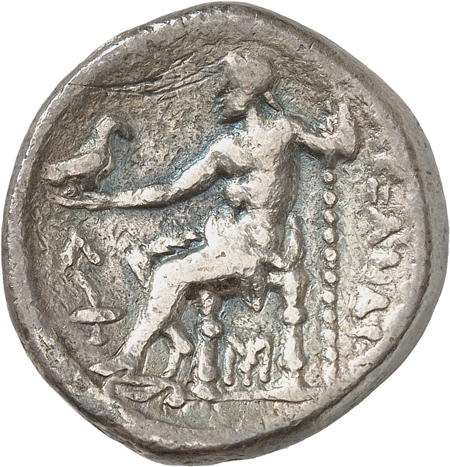 ΑΛΕΞΑΝΔΡΟΥ: Zeus seated on stool-throne left, eagle on outstretched right hand, sceptre in left hand