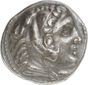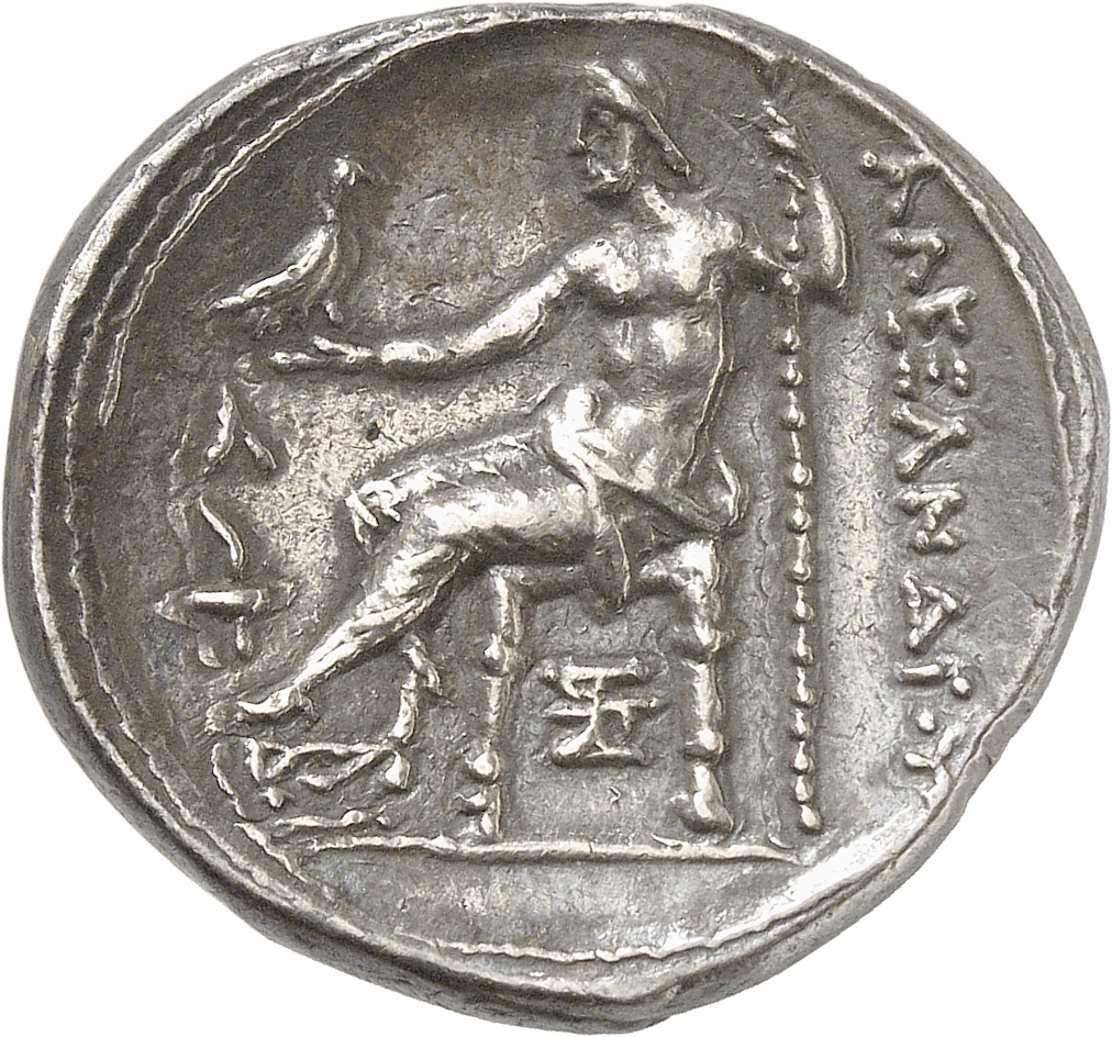 ΑΛΕΞΑΝΔΡΟΥ: Zeus seated on stool-throne left, eagle on outstretched right hand, sceptre in left hand