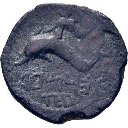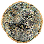 Bull, charging, to right, Legend above line
