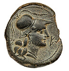 Male head, bearded, laureate, to left