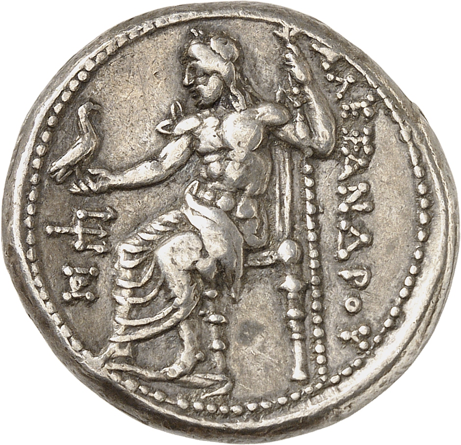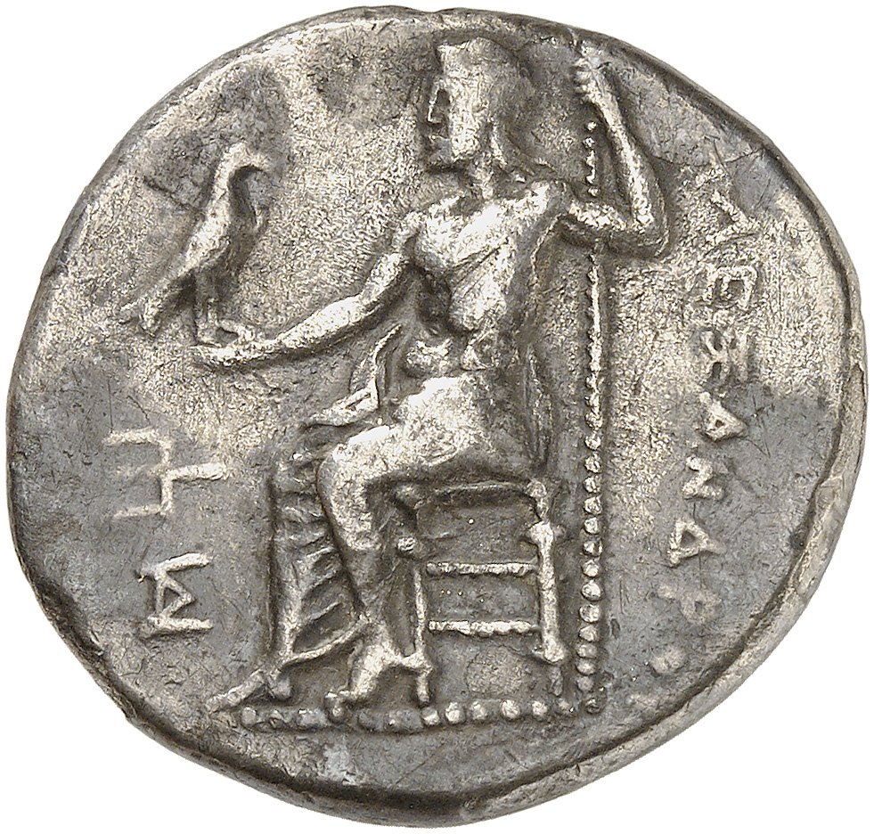 ΒΑΣΙΛΕΩΣ ΑΛΕΞΑΝΔΡΟΥ: Zeus seated on stool-throne left, eagle on outstretched right hand, sceptre in left hand