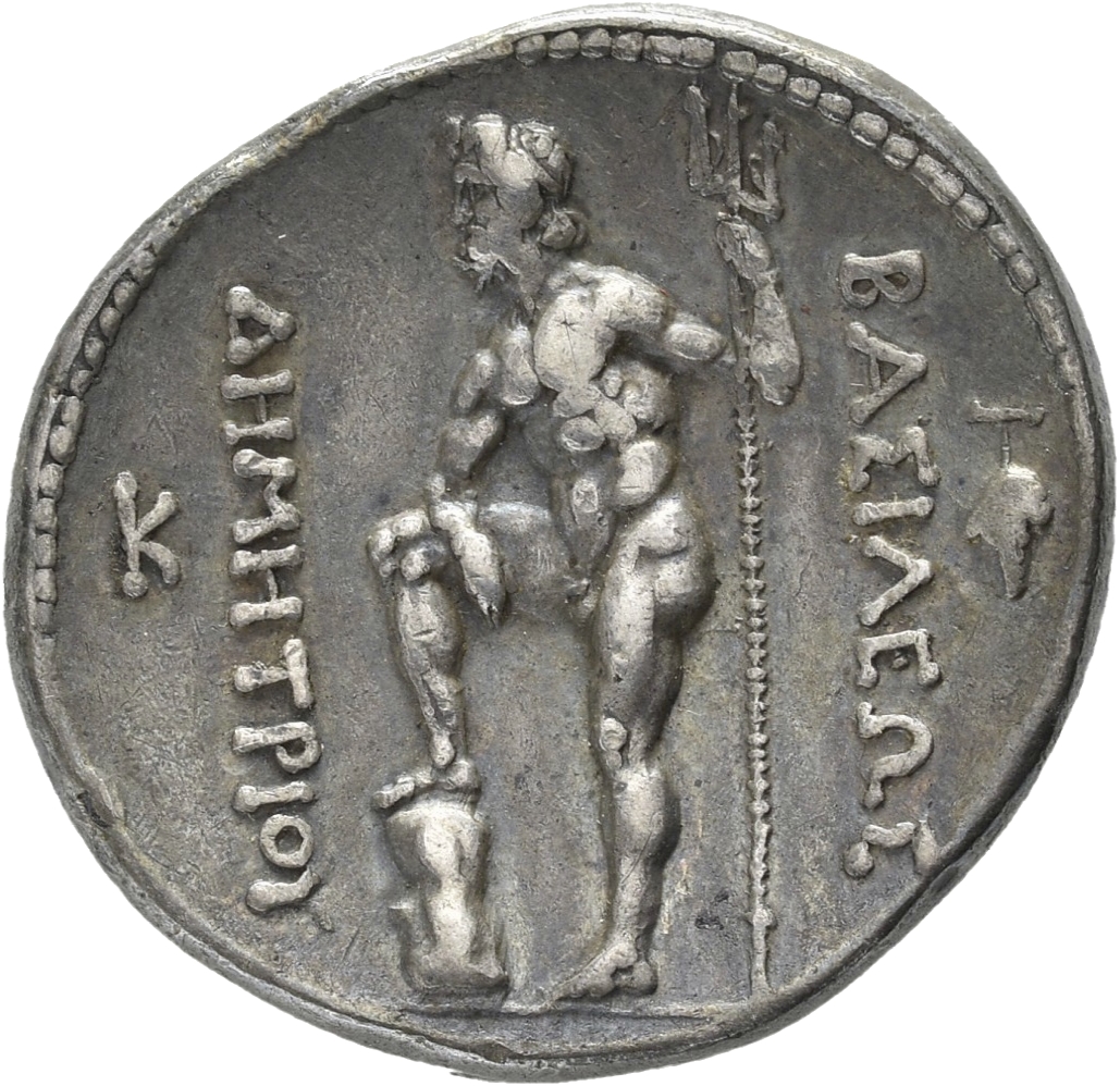 ΔΗΜΗΤΡΙΟΥ ΒΑΣΙΛΕΩΣ: Poseidon standing left, resting foot on rock and holding trident