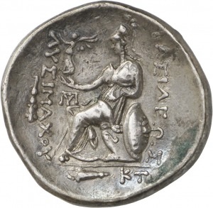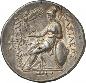 ΒΑΣΙΛΕΩΣ ΛΥΣΙΜΑΧΟΥ; ΒΑΣΙΛΕΩΣ ΛΥΣΙΜΑΧΟΥ ΖΟΠΥ: Athena seated on a throne, Nike on outstretched hand; behind, a shield