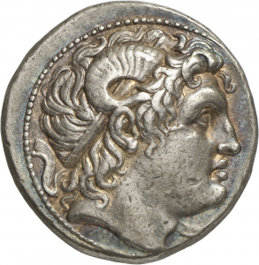 ΒΑΣΙΛΕΩΣ ΛΥΣΙΜΑΧΟΥ: Athena seated on a throne, Nike on outstretched hand; behind, a shield
