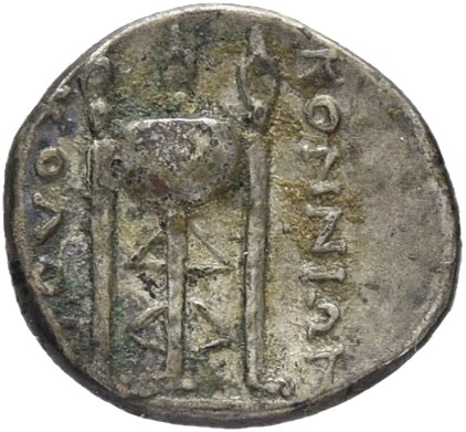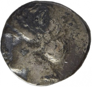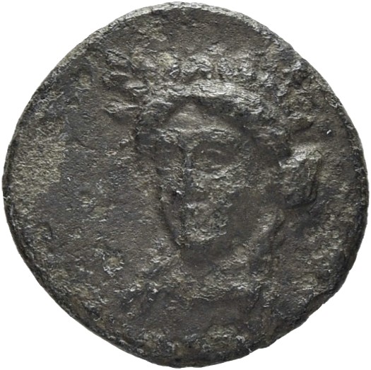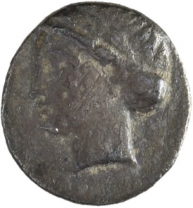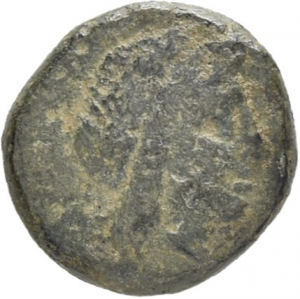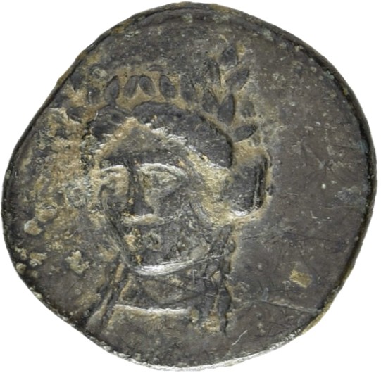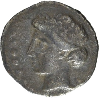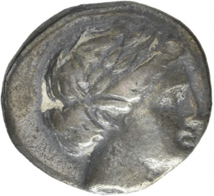 Head of Apollo wearing a laurel wreath left