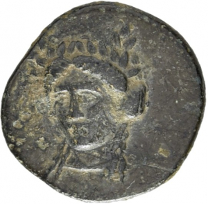 Head of Apollo three-quarters facing wearing a laurel wreath