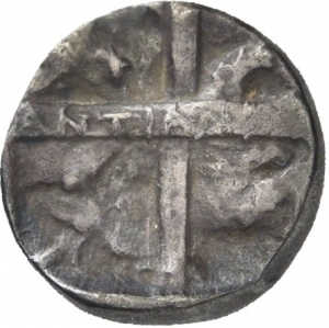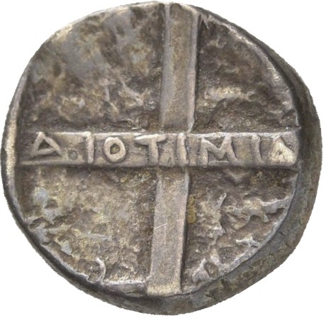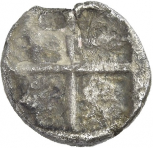 Four part incuse square with magistrate's name on cross-band