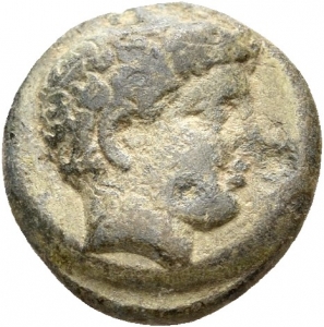 ΔΗ ΤΑ: Athena standing, holding spear over shoulder; behind, serpent.