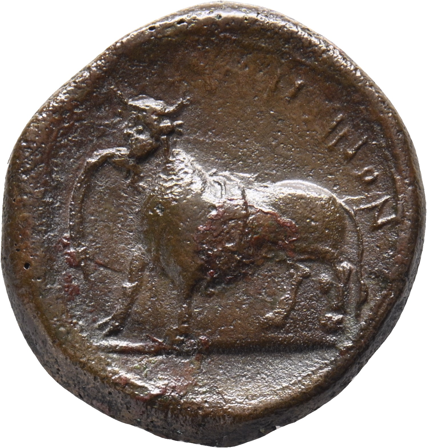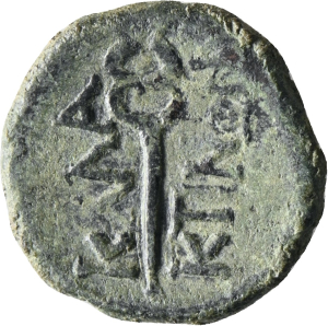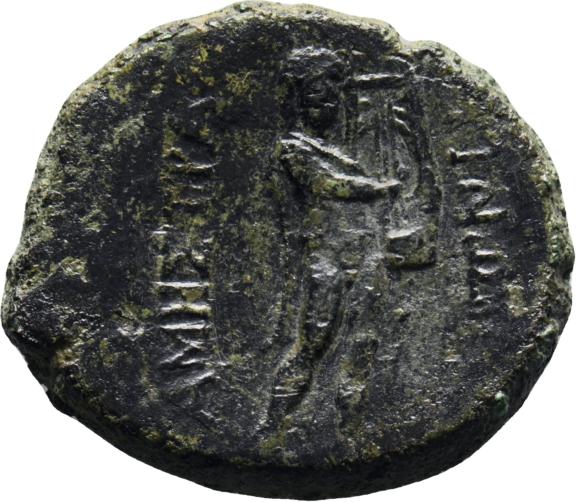 Female figure seated, holding a palm and a sceptre (?)