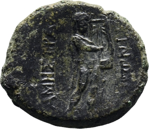 Dionysus standing, holding a thyrsus (sceptre surmounted by a pine cone and adorned with ribbons)
