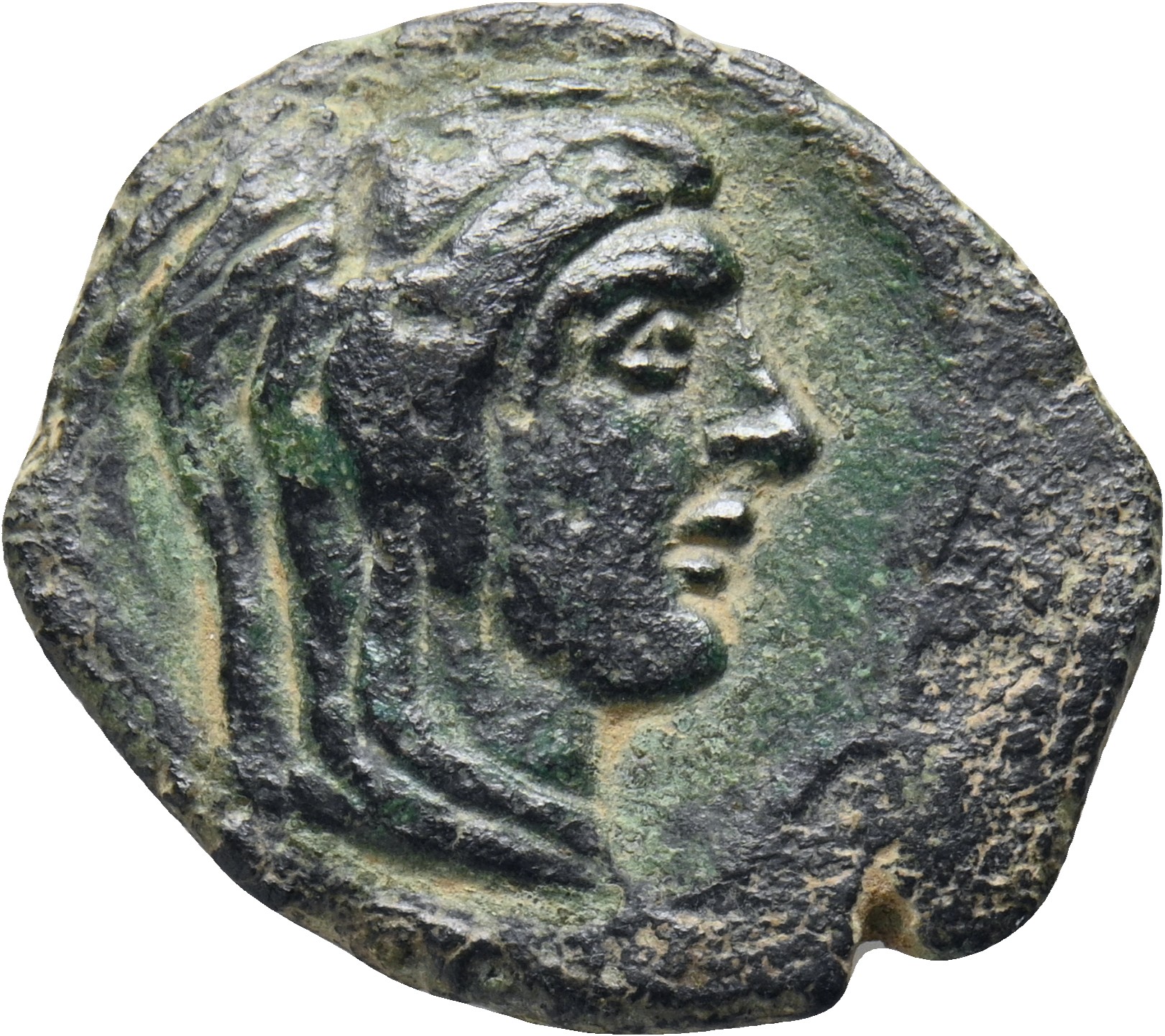Head of Asclepius, bearded wearing a diadem