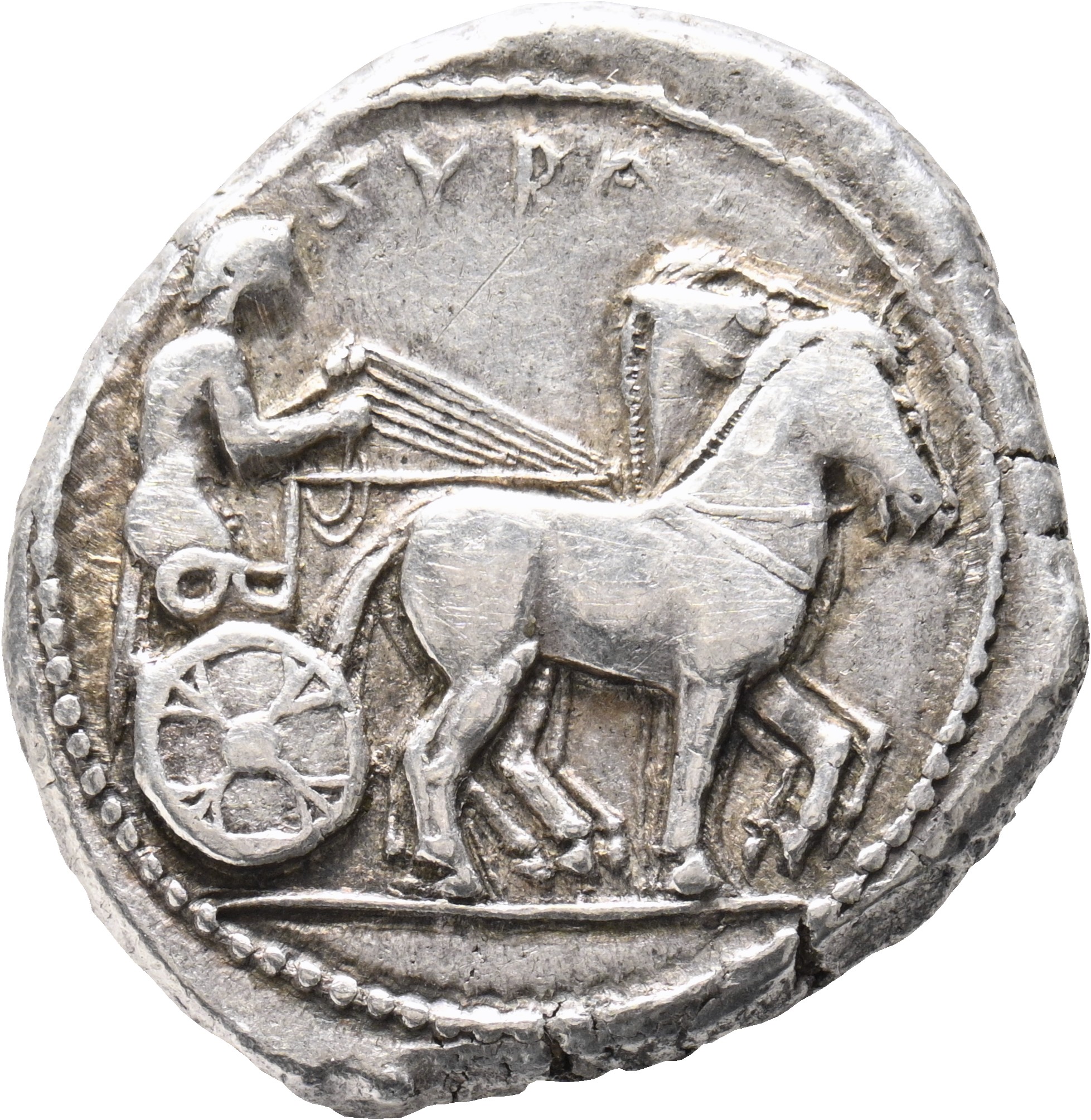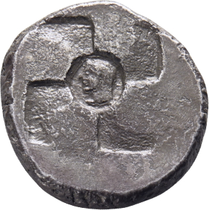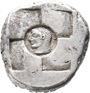 Swastika incuse with a head to the left in the centre