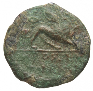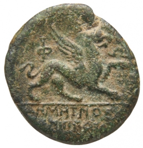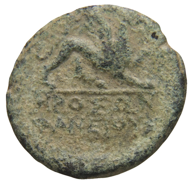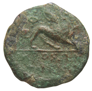 Tête d'Apollon à gauche, coiffée d'une couronne de laurier; dans le champ inférieur, phoque à gauche.