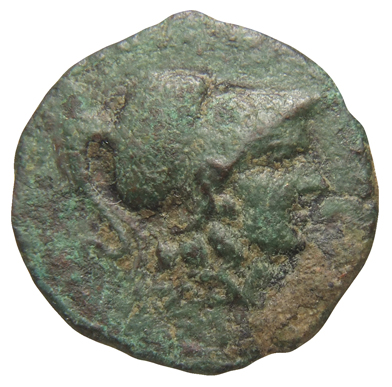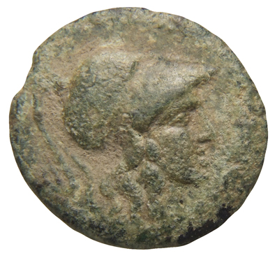 Tête d'Athéna, coiffée d'un casque attique et d'une couronne de laurier ; phoque