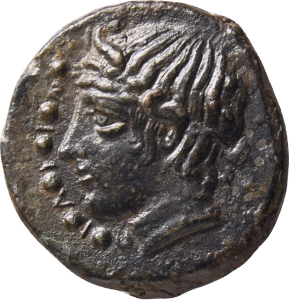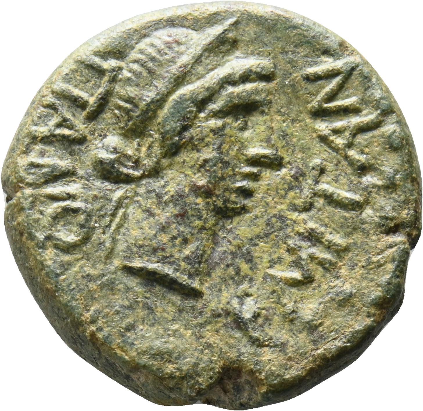 Tête de Zeus, coiffée d'une couronne de laurier.