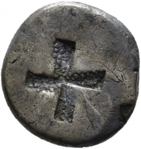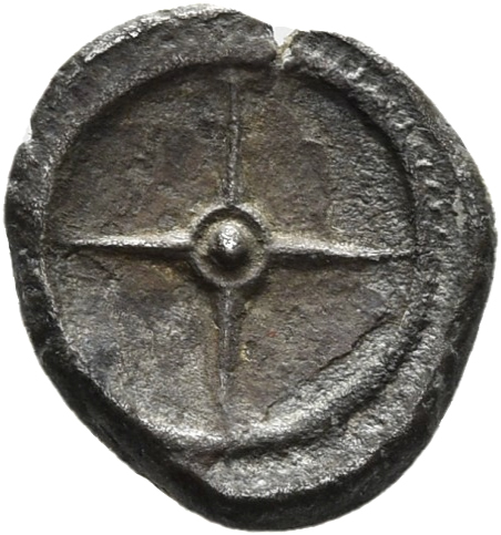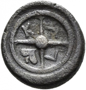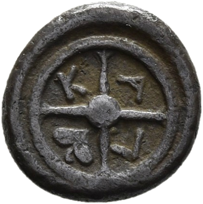 ΚΑΛ: Wheel with four spokes; fig leaf