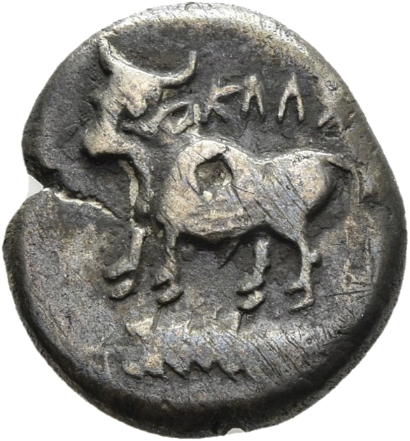 ΒΑΣΙΛΕΩΣ ΛΥΣΙΜΑΧΟΥ ΖΟΙΛΟΥ ΚΑΛΧΑ; ΚΑΛΧΑΔΟΝΙΩΝ; ΚΑΛΧ: Athena seated on a throne, Nike on outstretched hand; behind, a shield