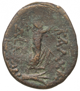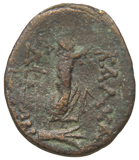 ΚΑΛΧΑΔΟΝΙΩΝ: Poseidon on a ship's prow holding a trident and an aphlaston (curved poop of ship)