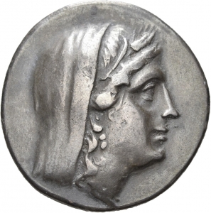 Head of Demeter wearing a veil and wreath of corn-ears