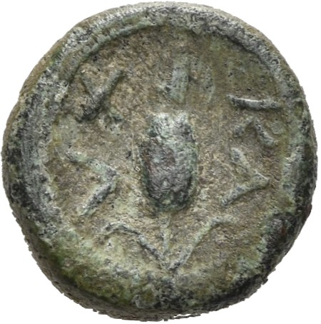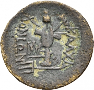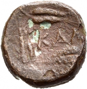 ΒΑΣΙΛΕΩΣ ΛΥΣΙΜΑΧΟΥ ΚΑΛΧΑ; ΒΑΣΙΛΕΩΣ ΛΥΣΙΜΑΧΟΥ ΚΑΛ: Athena seated on a throne, Nike on outstretched hand; behind, a shield