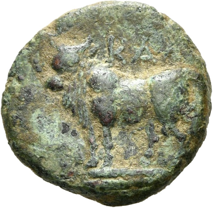 ΚΑΛΧ: Bull; below, corn-ear