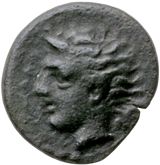 Head of Apollo facing wearing a laurel wreath