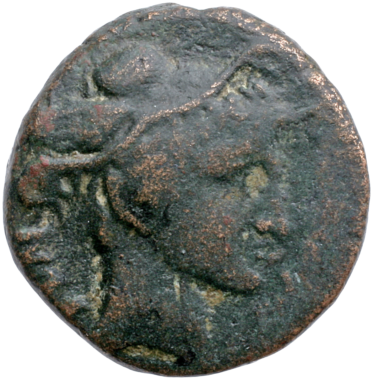Head of Hermes wearing a petasos (round hat with wide brim)