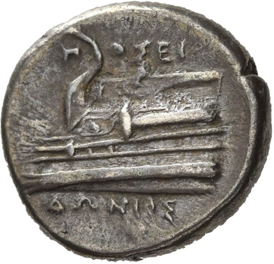 ΚΑΛΧΑΔΟΝΙΩΝ: Poseidon on a ship's prow holding a trident and an aphlaston (curved poop of ship)