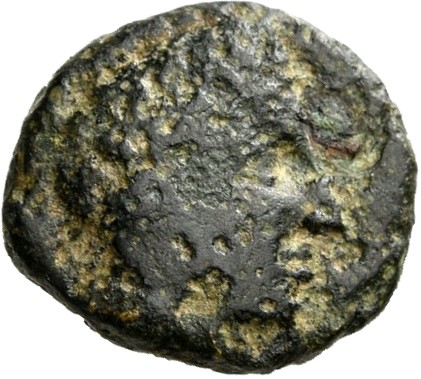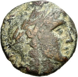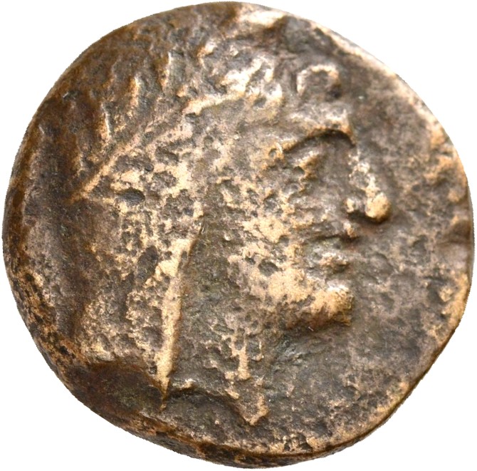 Head of Mithras bearded wearing a tiara and a laurel wreath