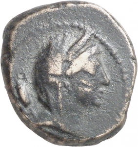 Gorytos (bow case) decorated with an aplustre and containing a bow, between two intertwined snakes; to side, grain-stalk and poppy